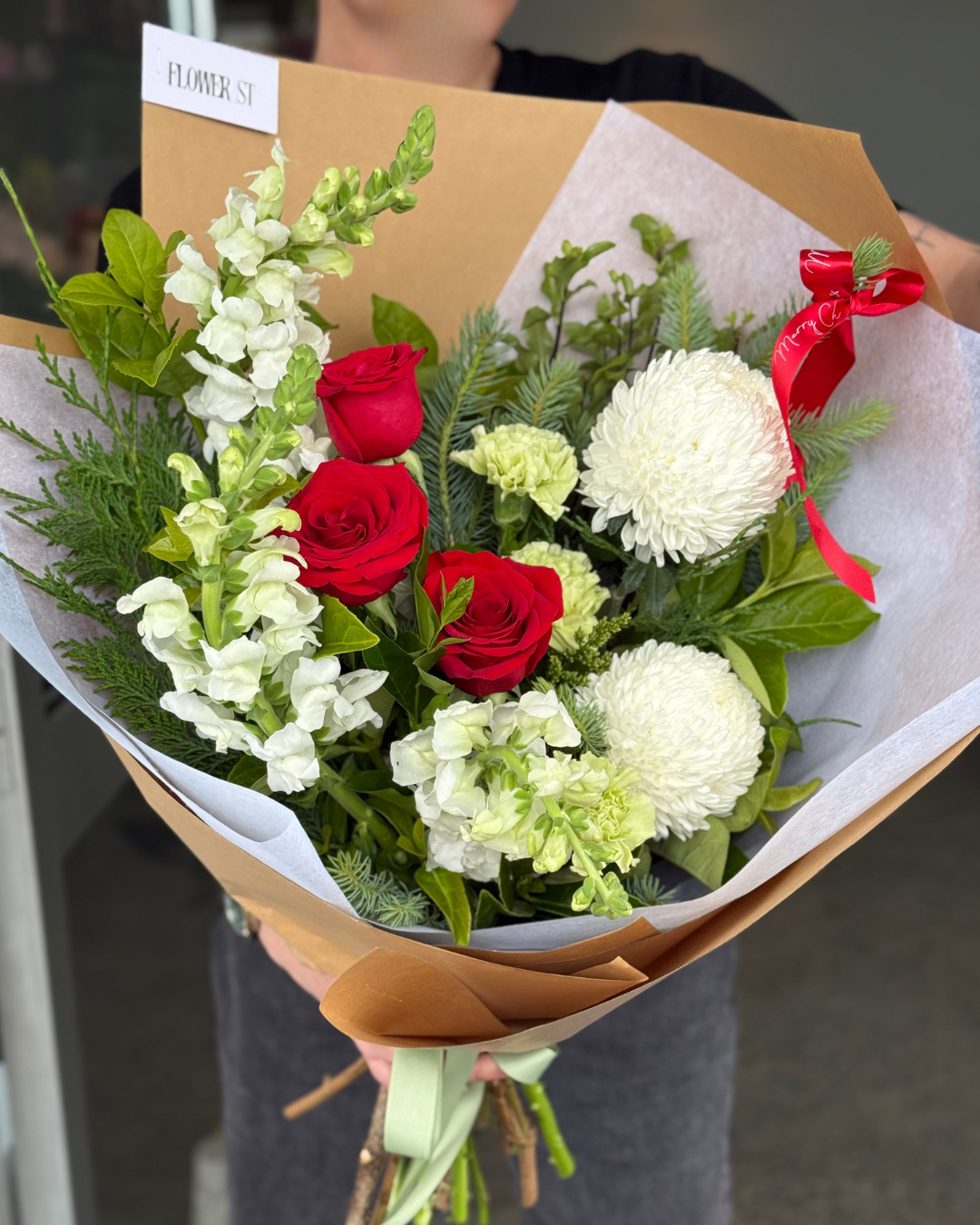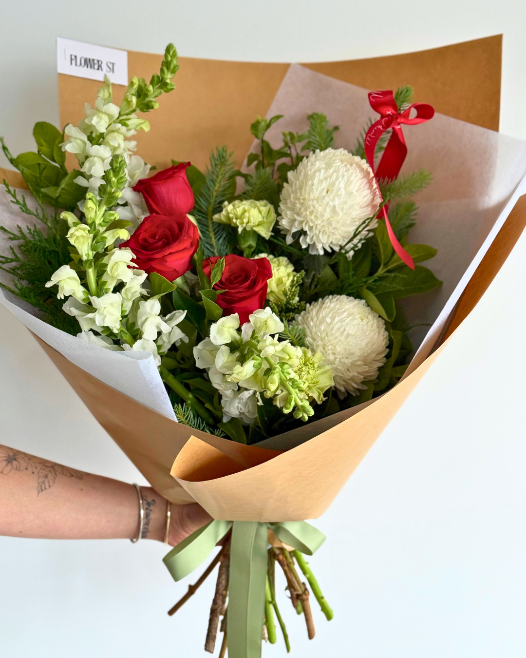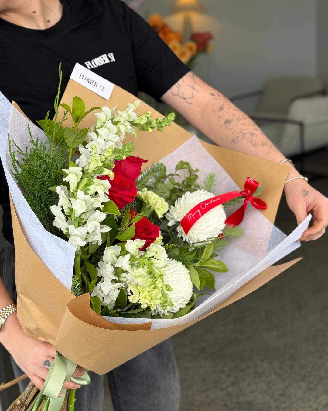 A joyful mix of rich red flowers and lush festive foliage, Holly St captures the warmth and tradition of the season. Perfect for gifting or brightening your home, it’s a timeless favourite that brings the spirit of Christmas to life.