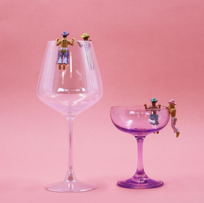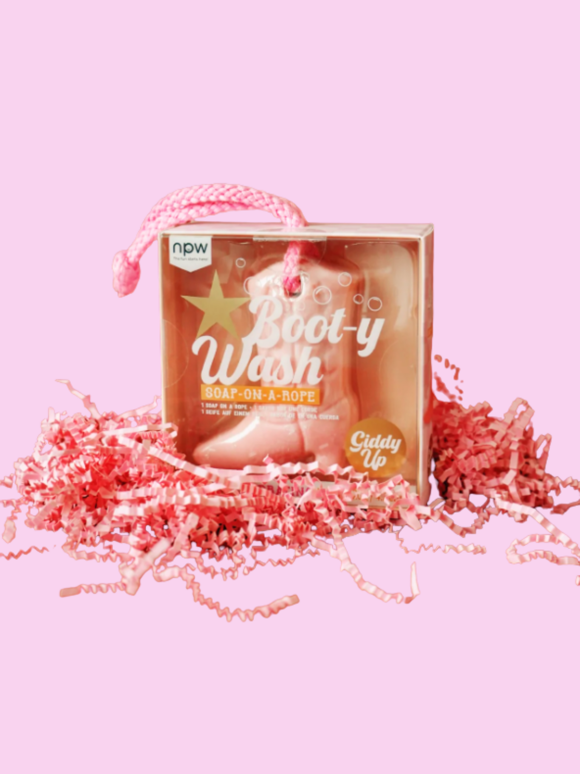 Everything in Petite, plus pink & green tulip wine glasses and cheeky cowboy “booty wash” soap on a rope.
